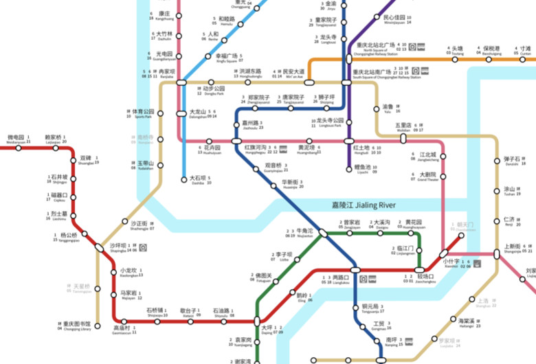 The metro system currently has four lines. The Chongqing Rail Transit (Group) Limited Co is planning to expand the total coverage. Individual lines of Chongqing metro can be identified by its color.