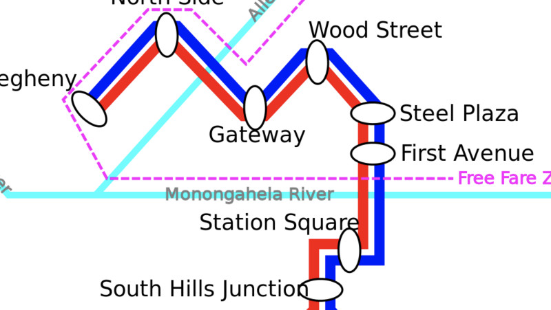 The really great thing about the T of Pittsburgh is that it has areas that are completely free, which encourages the use of public transport. This is possible thanks to the sponsor with Pittsburgh Steelers, Rivers Casino, and the Stadium ALCO Parking Authority of the City of Pittsburgh.