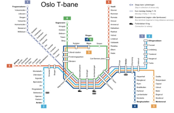 operados pela Norges Statsbaner. Desde 2011 um único bilhete para uma zona (rede de metro