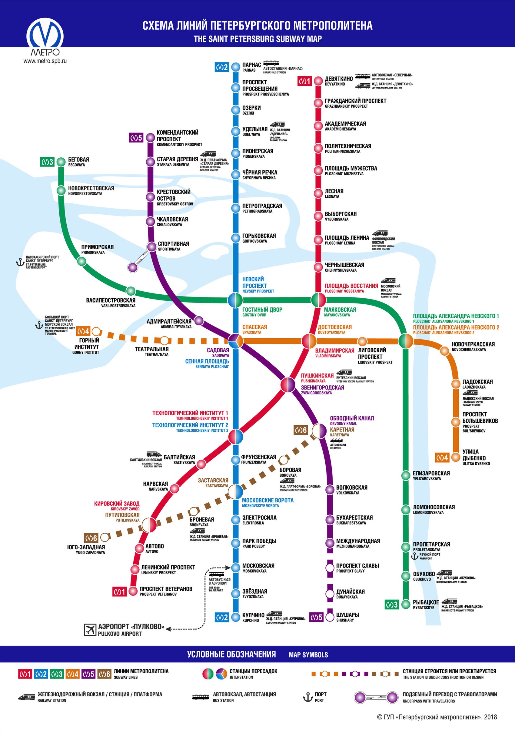 - Moskovsko-Petrogradskaya Line (Line 2). It was the second line to open in St. Petersburg in 1961. The system length is 30.1 km and serves 18 stations. It crosses the city from north to south from Tekhnologicheskiy to Parnas. Travel time is 47 minutes. Stations: Parnas, Prospekt Prosvescheniya, Ozerki, Udelnaya, Pionerskaya, Chornaya Rechka, Petrogradskaya, Gorkovskaya, Nevsky Prospekt, Sennaya Ploshchad, Tekhnologichesky Institut, Frunzenskaya, Moskovskiye Vorota, Elektrosila, Park Pobedy, Moskovskaya, Zvyozdnaya, Kupchino